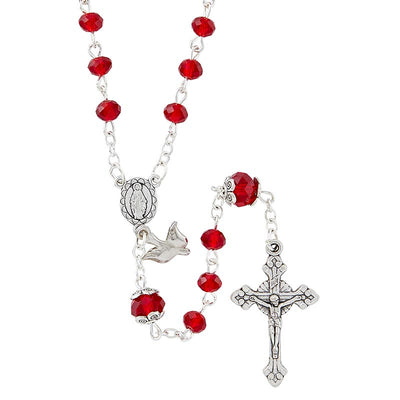 This rosary features red crystal beads and a delicate dove dangle put together with beautiful construction. This unique piece is sure to make a great spiritual gift for those with a special devotion and Confirmation.